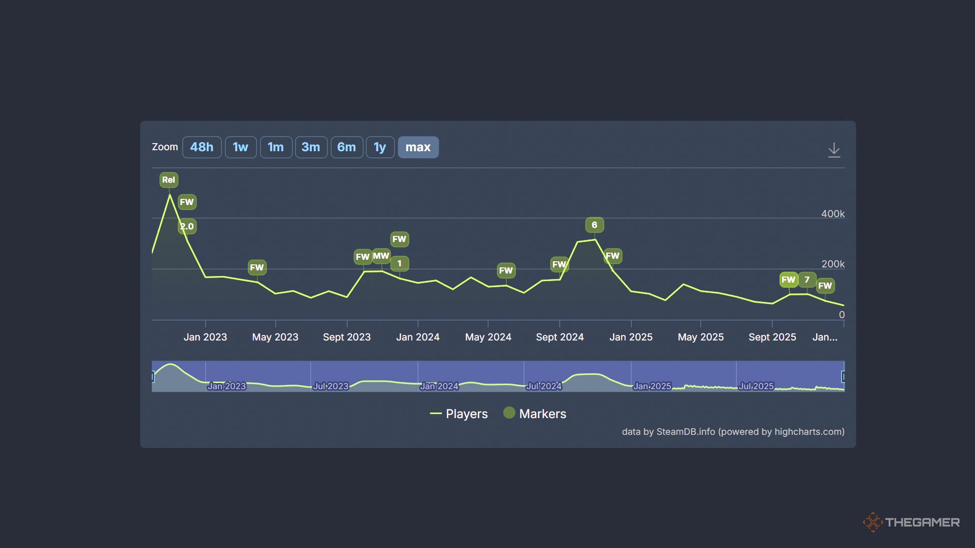 Обычно мы видим много новых игроков в период праздников, поэтому Activision просит нас быть с ними терпеливыми. Однако, количество игроков в игре фактически снизилось в декабре — всего через месяц после запуска — достигнув минимума в 43 569. Хотя сегодняшний пик немного лучше, общая тенденция показывает явный спад, а интерес к игре с 2019 года является самым низким за всю историю.