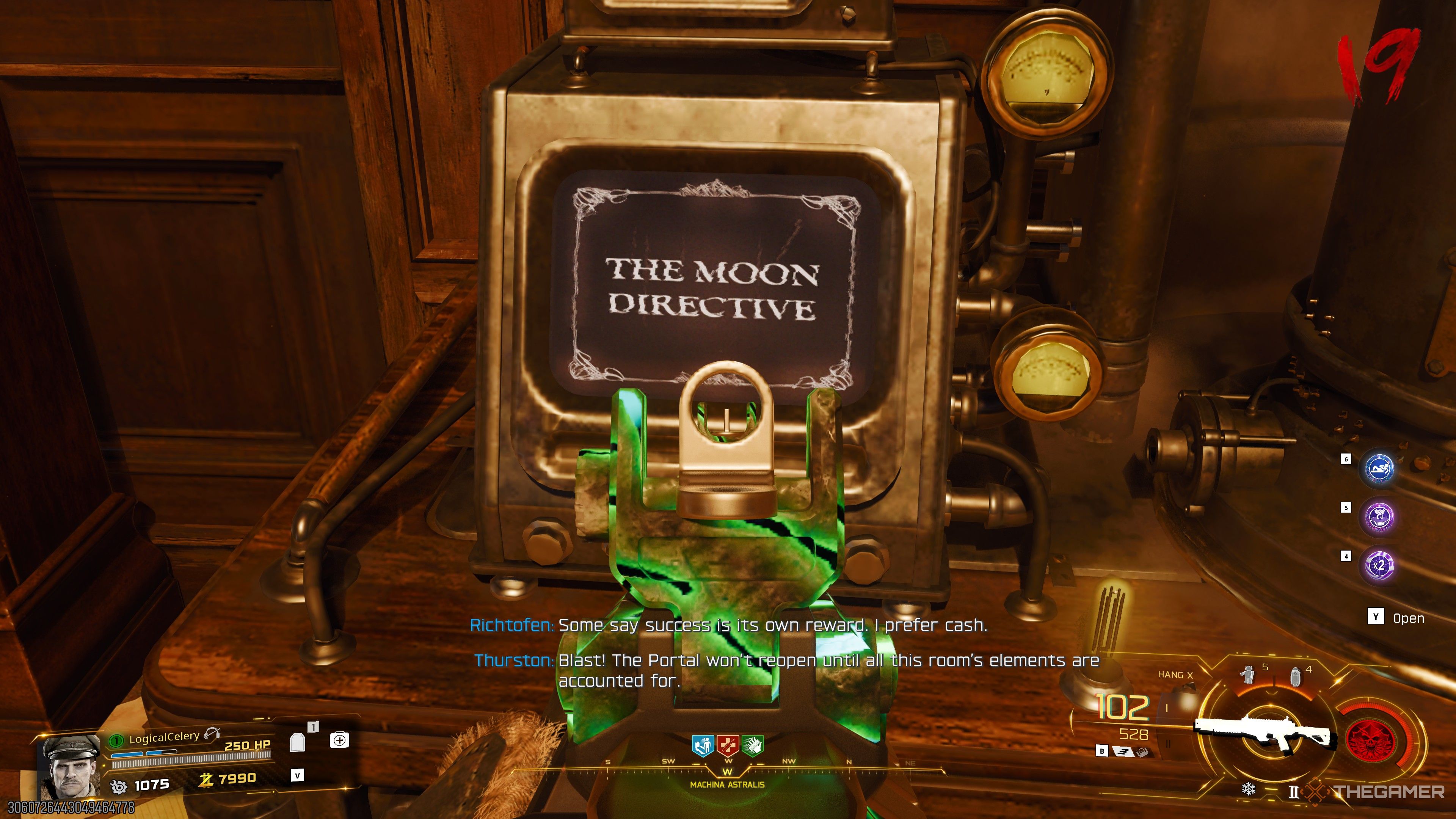 Начните блокировку портала, взаимодействуя с мозгом Thurston’а в Machina Astralis. Вам также нужно будет защитить портал от O.S.C.A.R., который будет регулярно отправлять НЛО, атакующие его.