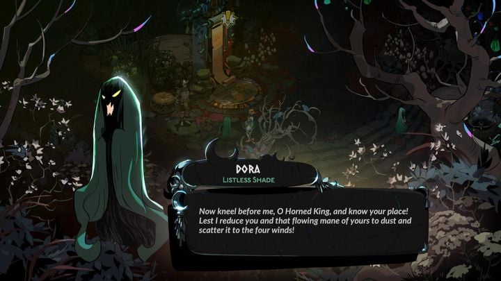 Одиссей выделяется тем, что его гордость за свои достижения сталкивается с чувством неловкости по отношению к прямой Мелиное. И затем у нас есть Морос, посланник от Судеб, с которым он часто не согласен. Впечатляет, как Supergiant Games объединили стиль современного аниме-персонажа с древнегреческой мифологией. Дора тоже великолепна — она моя любимая! Она похожа на Дусу в первой игре, но, возможно, потому что этот сиквел не так сосредоточен на комедии, её эксцентричная личность на самом деле очень забавна.
